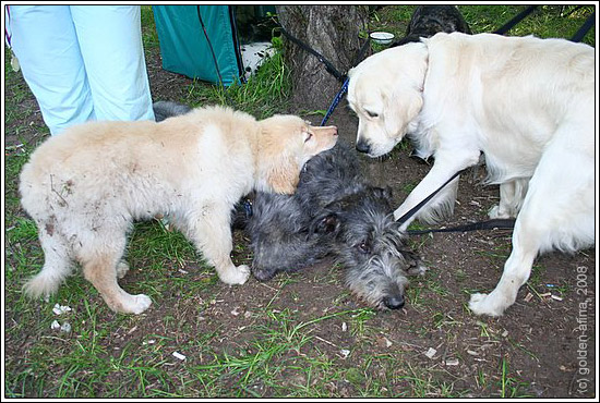 | Фотка прикольная! Quote (Ирина) Это ИВ мусолят? Да не мусолят, просто собак разных по темпераменту перестёжками за одно дерево цепанули. Вот так на выставках и бывает.... ИВушки лежат - отдыхают, а вокруг жизнь....суета....